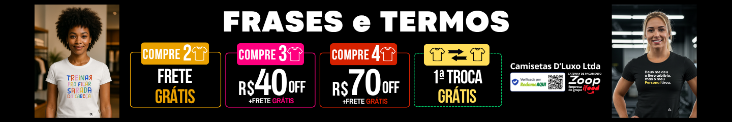 Camisetas com Frases que representam sua rotina na Academia e Termos icônicos do universo fitness. Estampas criadas para quem vive o treino como estilo de vida e quer vestir sua mentalidade todos os dias.